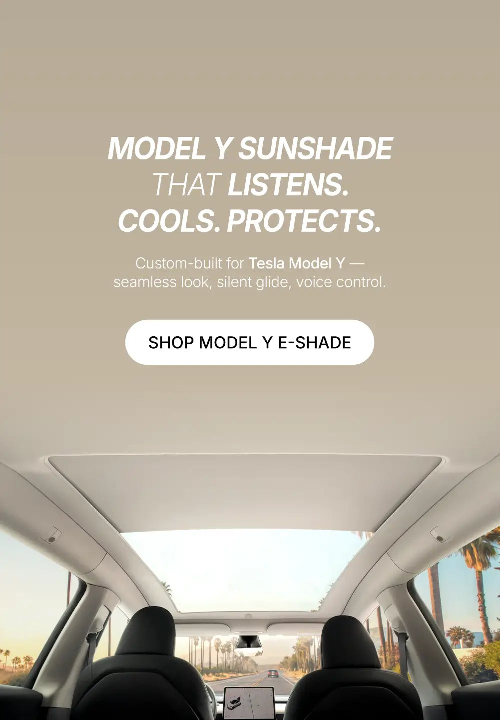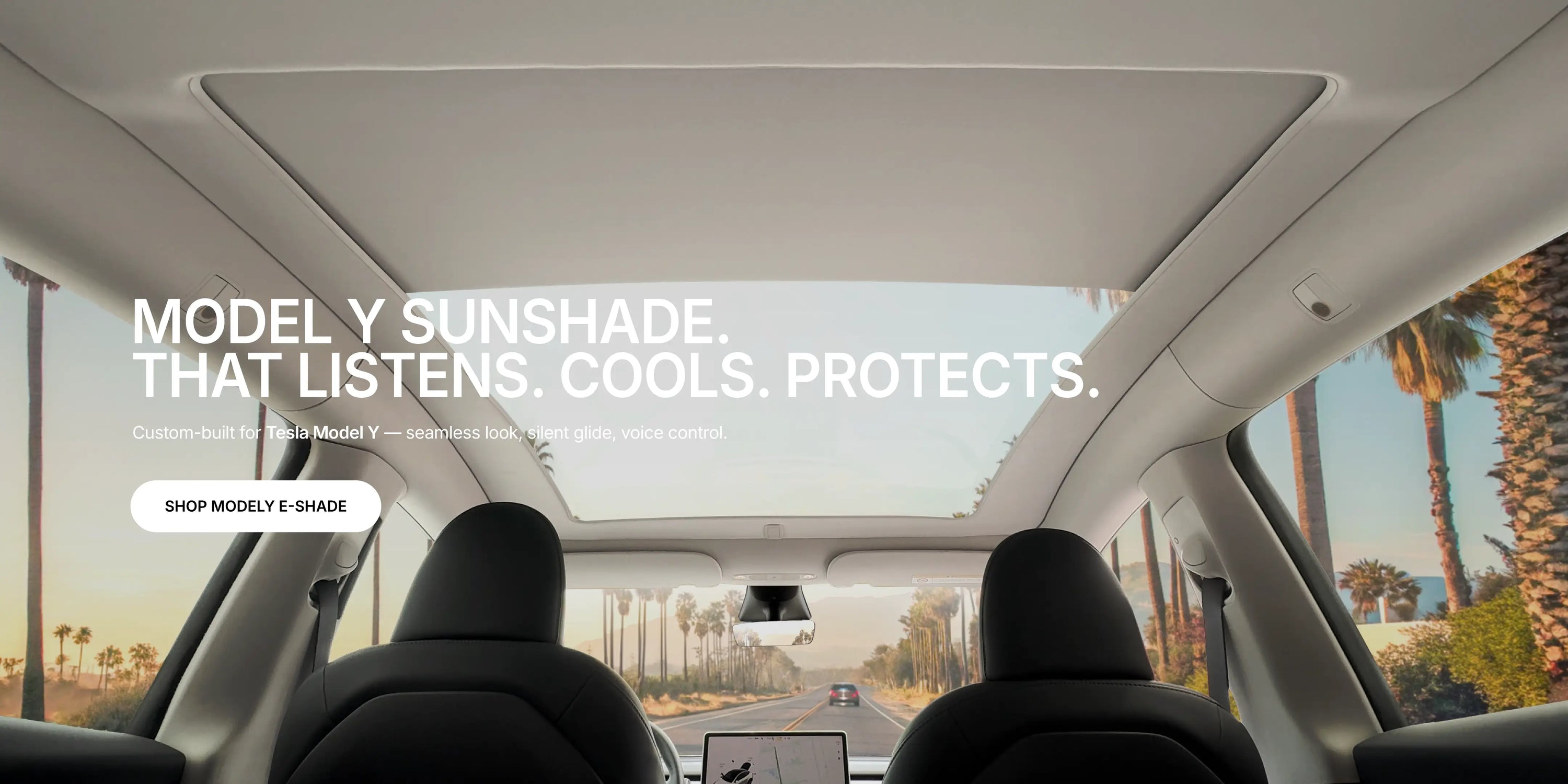 Voice-activated sunshade. Instant cooling for Model Y